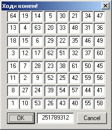 Никогда мне не удавалось сделать этого вручную, убивая время в поездах. Однако, в одной игре, в которую играла моя жена, требовалось это выполнить, чтобы пройти далее. В результате появилась данная программа, которая, поработав пару часов, нашла подходящий вариант. Программа была написана на скорую руку, далека от идеала. Сначала предполагалось её ретуширование, однако результат был достигнут и мотивация исчезла...