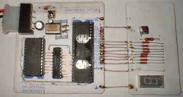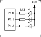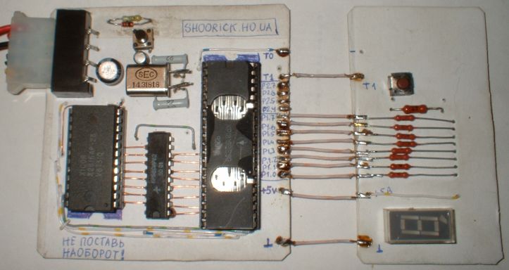 Для быстрой проверки устройства к нему были непосредственно припаяны светодиоды и написана тестовая программа, имитирующая уличный светофор. (скачать программу)