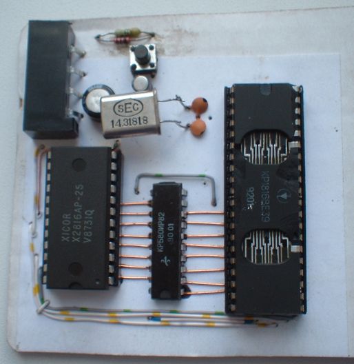 Схема типовая... Вместо 580ИР82 можно использовать 74573 или 74373 с изменением разводки.