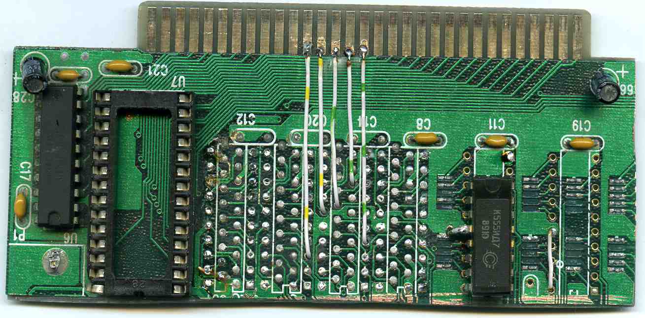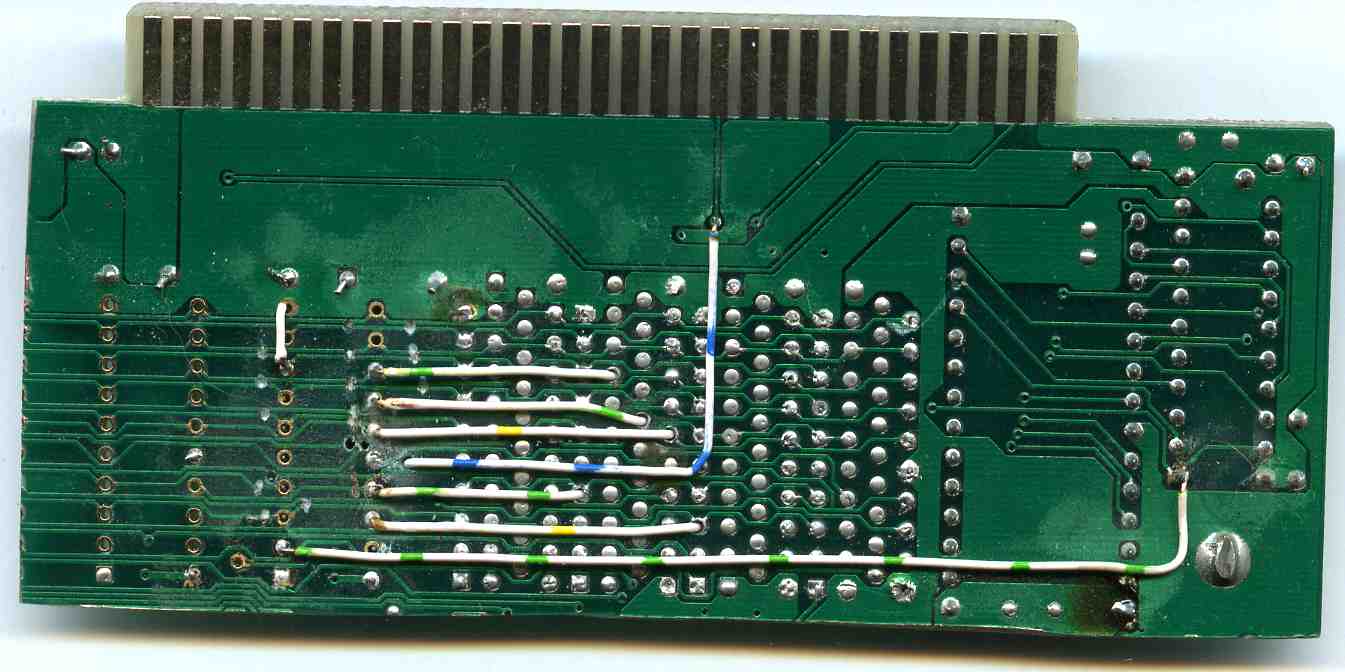 Next step I did was removing extra components and cutting off not needed parts of board. Then I've been supposing ways for wires and place to install 74138 chip. At this place I have cut off all surface connectors. One hole was connected to ground, so I deside to not use it as it has connection inside board to internal grounding foil, so I just fold out this pin of 74138. Then I did drilling holes and soldering wires.