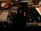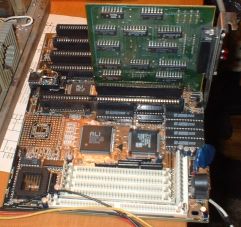 Для примера возьмем материнскую плату с 386 процессором, даже не устанавливая на нее память, установим порт LPT, временно удалим "родной" BIOS и вставим вместо него эмулятор ПЗУ со своей программой.
